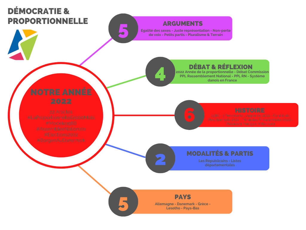 A l’image de notre association, l’année de 2022 a été riche pour le sujet de la proportionnelle. Une année supplémentaire s’achève sans que la France n’ait adopté ce mode de scrutin aux élections législatives. Adoption d’une résolution, propositions des candidats à la présidentielle, débat d’une proposition de loi en Commission,… de nombreuses actualités politiques ont tourné autour de la proportionnelle.